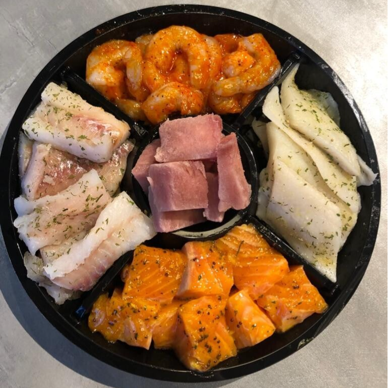 Wilt u wel eens wat anders dan alleen maar vlees op uw gourmetplaat? Dan zit u goed! Wij bieden een (h)eerlijk assortiment aan vissoorten die uitermate geschikt zijn voor gourmet & steengrillen. Black tiger gamba's piri piri, gekruide kabeljauwfilet, zalm in honing mosterd marinade, tonijn en de vangst van de dag! Uiteraard kunt u ook hierin uw eigen voorkeur aangeven, samen maken we er wat lekkers van zodat niets een gezellig avondje in de weg staat.